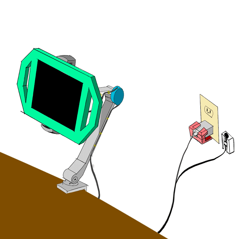 Adjustable aluminum arm that improves reach while managing cables to reduce clutter and tripping hazards.